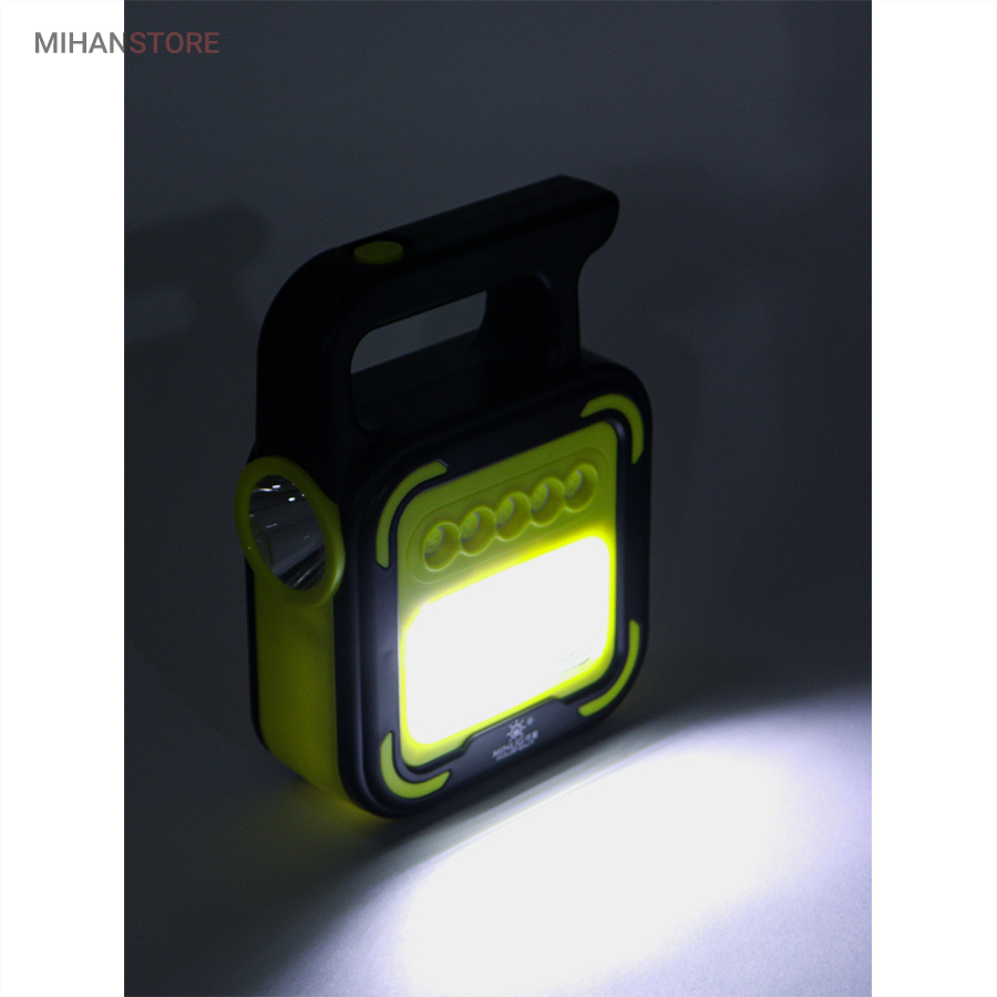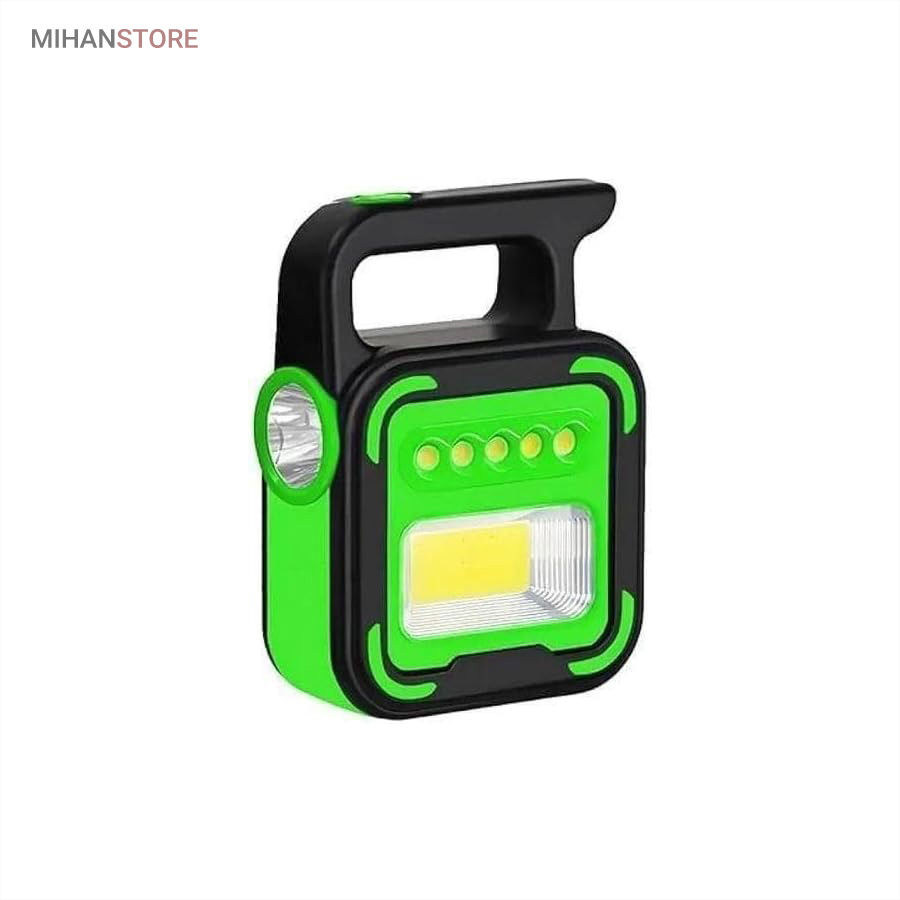 یک وسیله با چندکارایی جالب می باشد. جنس بدنه چراغ کار از ABS و مقاوم در برابر ضربه می باشد. چراغ و پروژکتور اضطراری دارای پاوربانک دارای 4 حالت نوردهی که شامل: چراغ قوه سفید و چراغ قوه آفتابی با نور زرد و چراغ جانبی قوی COB شش چراغه با نور قوی و چراغ جانبی کوچک میباشد. چراغ کار چند کاره دارای ویژگی هایی چون: دست گیره، قابلیت شارژ با برق شهری و نور خورشید، و خروجی USB برای شارژ موبایل می باشد.