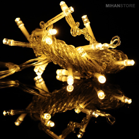 ریسه LED دکوراتیو 10 متری با رقص نور بسیار زیبا و هیجان انگیز، زیبایی بخش منزل ویا اتاق شما است. انعطاف پذیری بالا، شفافیت سیم، مصرف پائین، طول 10متری و تنوع حالت های نوردهی، این نوع ریسه را برای تزئین اتاق عقد یا نامزدی و جشن تولد، تزئین درخت کریسمس، دور پنجره ها، دور آلاچیق و ... و بطور کلی محیط های داخلی و خارجی ساختمان مناسب ساخته است. استفاده از آن به دلیل داشتن دوشاخه معمولی بسیار آسان است و فقط کافیست آنرا به پریز برق متصل نمائید تا شروع به کار نماید. با زدن کلید کوچکی که همراه ریسه است می توانید نوع رقص نور را انتخاب نمائید. همچنین می توانید تمام ریسه را بدون رقص نور، ثابت روشن نگه دارید. با توجه به اینکه این ریسه با برق 220 ولت کار می کند، نباید ریسه را در محیط های خیلی مرطوب استفاده و یا در آب غوطه ور نمود.