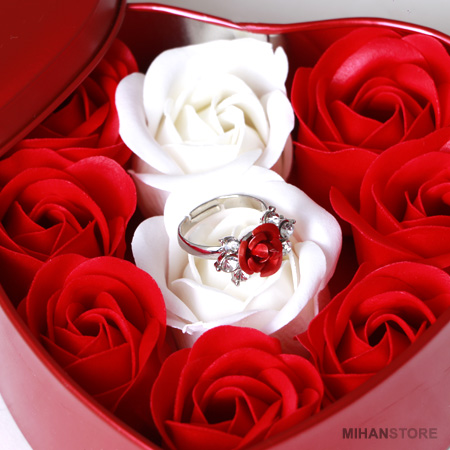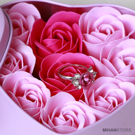 - محتویات داخل جعبه: انگشتر و گل های رز عطری