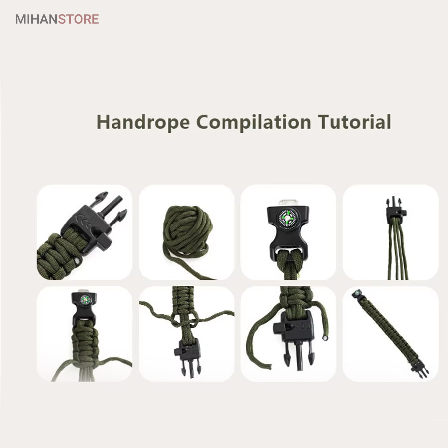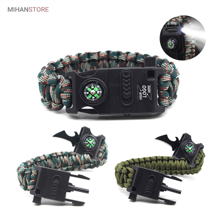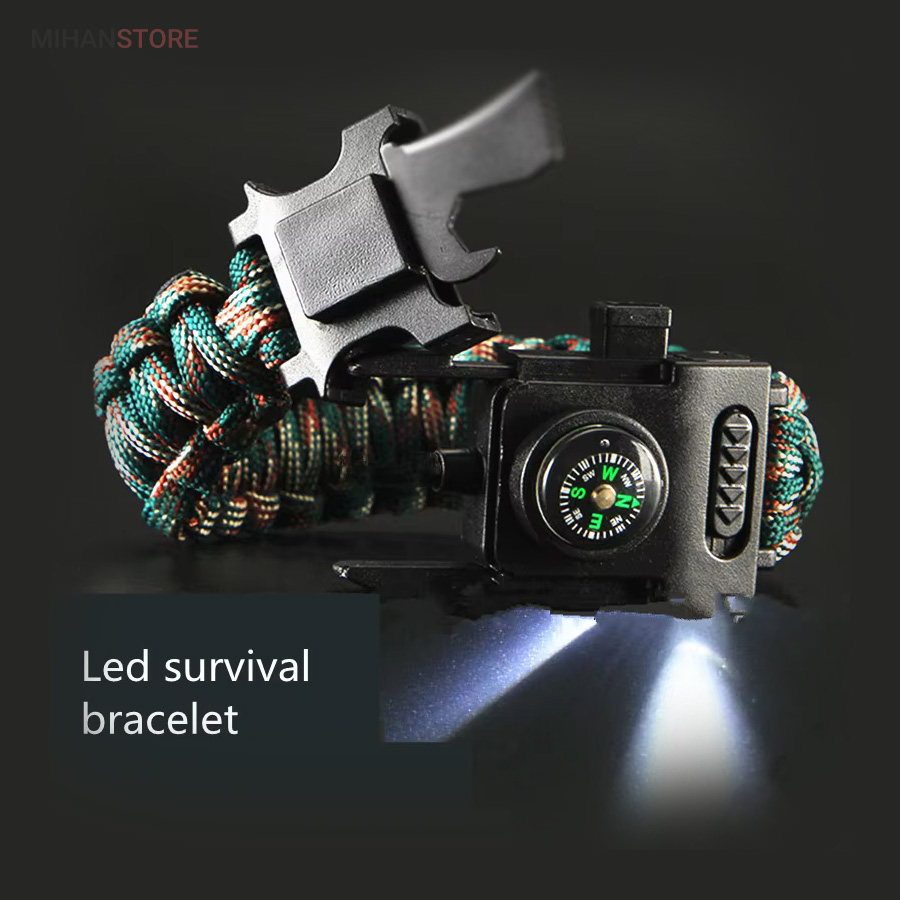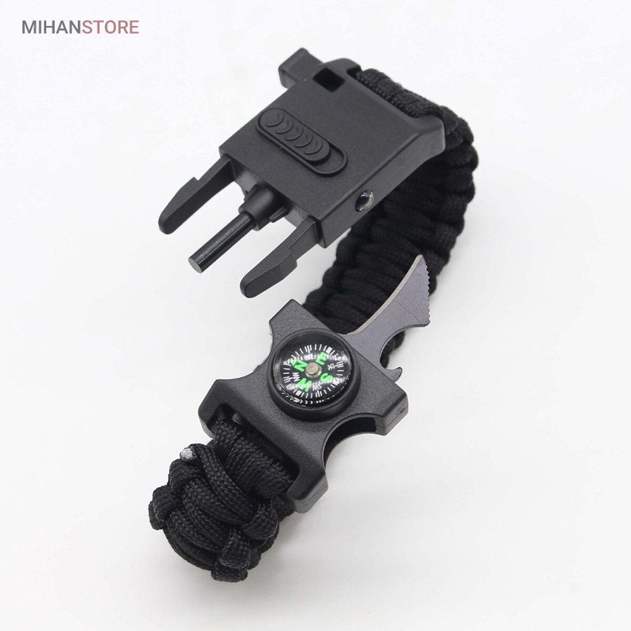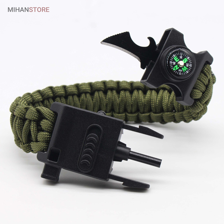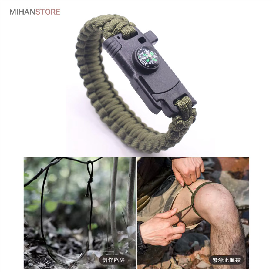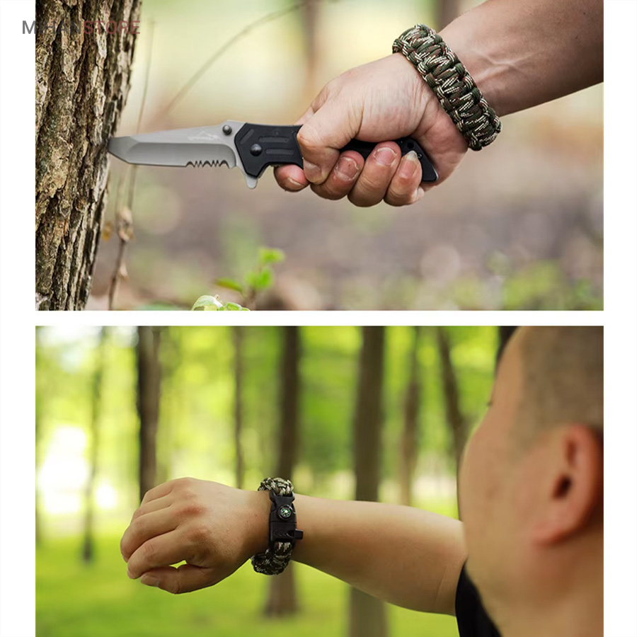 دستبند پاراکورد و نجات دارای وسایل ضروری برای بقا در طبیعت است، به وسیلۀ این دستبند میتوانید به راحتی آتش روشن کنید، از ارتفاع پایین بیایید، مسیریابی کنید، ماهیگیری انجام دهید و… اگر به شکل دستبند پاراکورد و نجات نگاه کرده باشید متوجه میشوید که مانند یک طناب است، جالب است بدانید که طناب پاراکورد ساخته شده برای چتربازی هم مورد استفاده قرار میگیرد و از مقاومت و استحکام بسیار بالایی برخوردار است. مقاومت بالای این طناب به میزانی است که میتوانید یک وزنهی 200 کیلوگرمی را بدون نگرانی به آن متصل کنید، از طناب پاراکورد علاوه بر چتربازی میتوان در ماهیگیری، بند آوردن خونریزی، درست کردن آتش، فرود آمدن از ارتفاع، طناب نگهدارندهی چادر، درست کردن پناهگاه و… نیز استفاده کرد.دستبند پاراکورد و نجات معمولا از 7 تا 9 رشته طناب با طولی 3 تا 4 متری تشکیل شده است که میتوان برای مصارف مختلف در سفر از آن استفاده کرد. دارای ضروریات مربوط به یک سفر بوده و همچنین میتواند به دلیل زیبایی آن نیز مورد استفاده قرار گیرد، این وسیلۀ کاربردی میتواند کادوی بسیار مناسبی برای افرادی باشد که بسیار در طبیعت سفر میکنند. قطب نما، سوت اضطراری این سوت سطح سر و صدا را میتواند تا 110 db ایجاد کند و به امدادگران سیگنال دهد و چاقو که برای برش طناب و مواقع ضروری مورد استفاده قرار میگیرد و پشت چاقو در قسمت بالا هم دندانههایی قرار دارد.