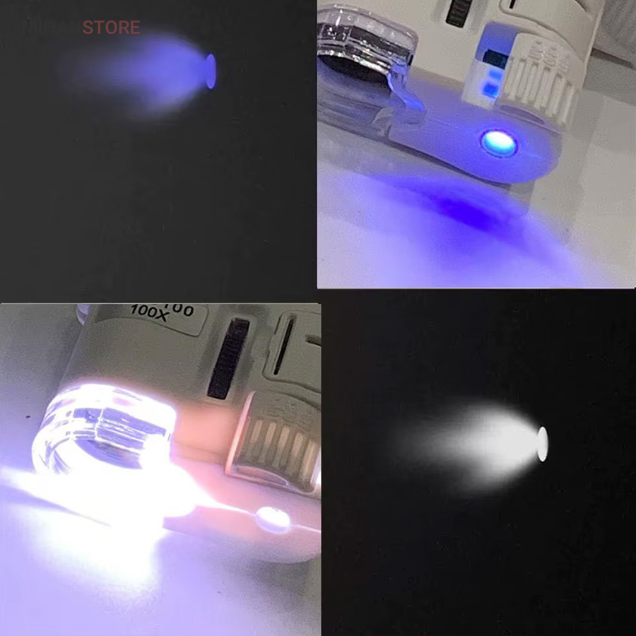 میکروسکوپ موبایل 60x یونیورسال مدل 9595 ذره بینی کوچک و قابل حمل در جیب با زوم 60 برابر و مدل کلیپسی گیره دار مناسب اتصال به گوشی موبایل میباشد.موبایل های هوشمند امروزی از بسیاری از کامپیوتر های چند سال قبل هم سریع تر و هم قوی تر شده اند از این رو هر روزه گجت های متنوع و کاربردی فراوانی مخصوص موبایل طراحی شده و معرفی می شوند.این میکروسکوپ موبایل با بزرگنمایی 60 برابر در واقع یک لنز مخصوص موبایل است که به همراه کلیپس خود می تواند بروی دوربین انواع موبایل نصب شده و دوربین موبایل رو به یک میکروسکوپ تبدیل کند. پس اگر به دنبال میکروسکوپ قابل حمل هستید، این گجت گزینه مناسبی می باشد.این میکروسکوپ موبایل با قدرت بزرگنمایی 60 برابری، دارای قیمت ارزان و کیفیت قابل قبولی می باشد و دارای توان مصرفی پایینی است که امکان نصب بر روی انواع تلفن همراه و تبلت ها قابل نصب می باشد.از آنجائیکه منبع نور این دستگاه درست در امتداد لنز اصلی آن قرار داشته و نور از بالا بروی نمونه تابیده می شود از این رو برای رویت سطح هر جسمی میتوان از آن استفاده نمود مانند سطح کاغذ، سطح برگ، مشاهده مدارهای الکترونیکی (مدار چاپی)، مشاهده جواهرات و سنگ های قیمتی، مشاهده امور مختلف زمین شناسی ، استفاده برای صنعت چاپ و دهها صنعت دیگر.دارای دو عدد چراغ LED می باشد که یکی از آنها سفید و برای روشن کردن زمینه بوده و چراغ دوم نور آبی UV جهت تست اسکناس می باشد.قسمت بالائی این ذره بین همانند تلسکوپ یا دوربین تک چشمی بصورت طولی بزرگ و یا کوچکتر می شود؛ و امکان زوم را میدهد.کلید این ذره بین دو حالته می باشد و با باطری کوچک ساعت کار می کند و بسیار کم مصرف است.فاصله ای که از جسم مورد نظر باید گرفت تا واضح دیده شود مماس تا 1 سانتی متر میباشد.