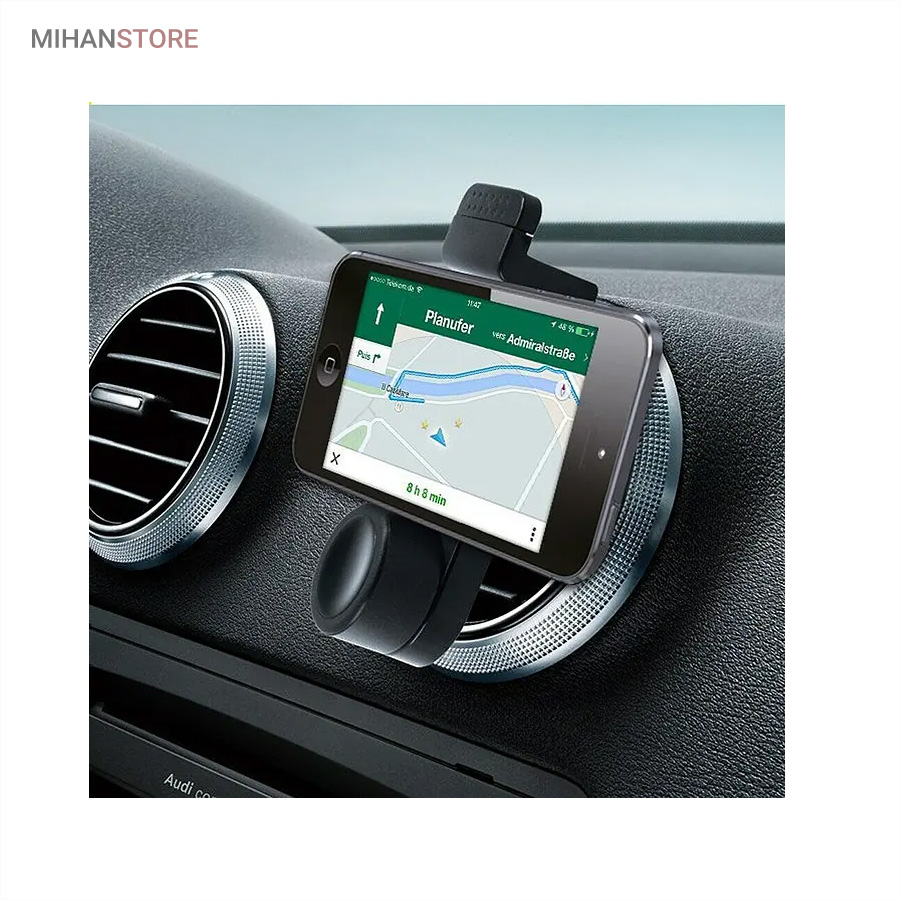 با استفاده از این پایه نگه‌دارنده کوچک، می‌توانید گوشی موبایلتان را روی پره‌های دریچه تهویه هوای داخل خودرو متصل کنید و آن را در مقابل خود داشته باشید. این پایه مکانیزم ساده‌ای دارد و نصب و برداشتن آن‌هم کار سختی نیست. فک‌های نگه‌دارنده آن به‌صورت کشویی از 55 تا 84 میلی‌متر باز می‌شوند و می‌توانند گوشی‌های 3.5 تا 6 اینچی را درون خود نگه‌دارند. پشت این فک‌ها، زبانه‌های پلاستیکی کوچکی تعبیه‌شده‌اند که با اندکی فشار به پره‌های دریچه تهویه داخل خودرو متصل می‌شوند. به کمک همین زبانه‌ها می‌توان از این پایه نگه‌دارنده برای استفاده رومیزی (به‌عنوان استند گوشی) هم استفاده کرد. با خرید و نصب پایه‌های نگه‌دارنده خودرویی، تمرکز بیشتری بر رانندگی خود خواهید داشت.