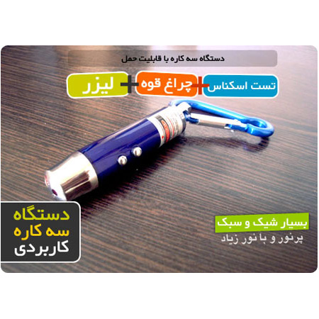 مهمترین ویژگی این دستگاه تست اسکناس و چک پول های تقلبی است که این روزها با وارد شدن پول های تقلبی در بازار ، این دستگاه می تواند کمک بزرگی برای تشخیص این امر باشد. در کنار تست اسکناس نیز یک چراغ قوه (با نور مهتابی) و یک لیزر با برد بسیار بالا نیز قرار دارند که همگی باعث شده اند این دستگاه به یک دستگاه سه کاره کاربردی با قیمت استثنایی تبدیل شوند!